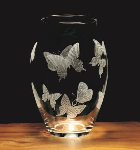Glass Vase engraved with a design of Butterflies.